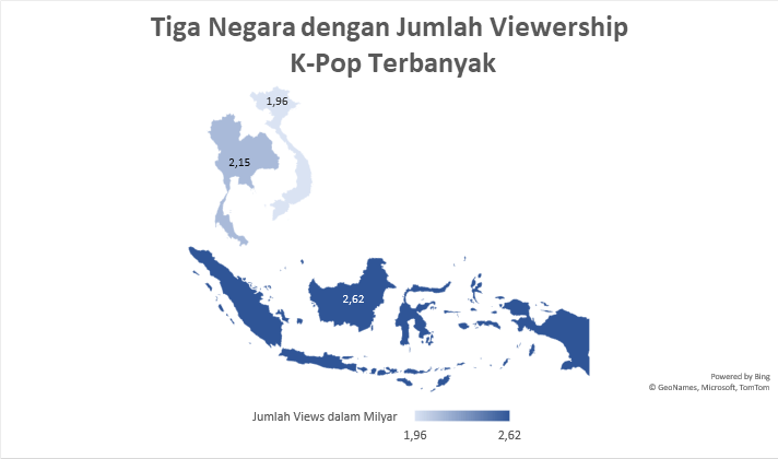Data dari Blip tersebut menunjukan jika K-Pop amat sangat populer di 3 negara Asia Tenggara ini, di susul oleh Amerika Serikat dengan 1,95 milyar views.