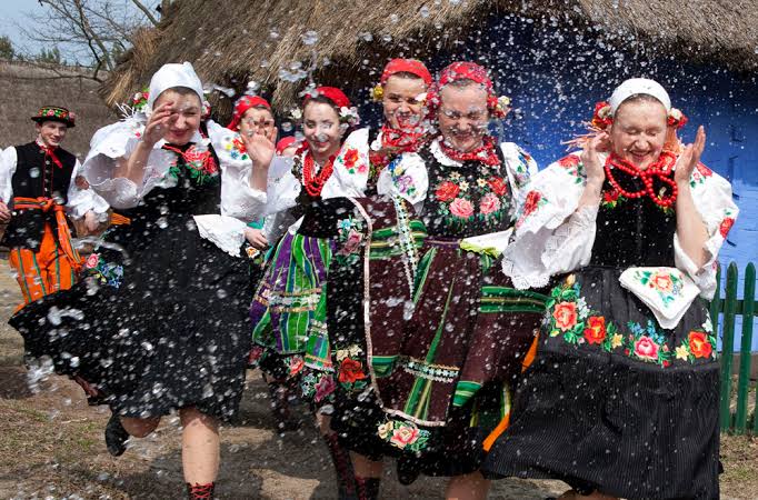 Tradisi menyiram wanita dengan air yang berasal dari ritual pagan menjelang musim semi namun dimasukan secara tak resmi ke dalam kalender Kristen. Kini tradisi ini dirayakan pada Senin Paskah dengan cara-cara yang unik di berbagai wilayah Polandia.