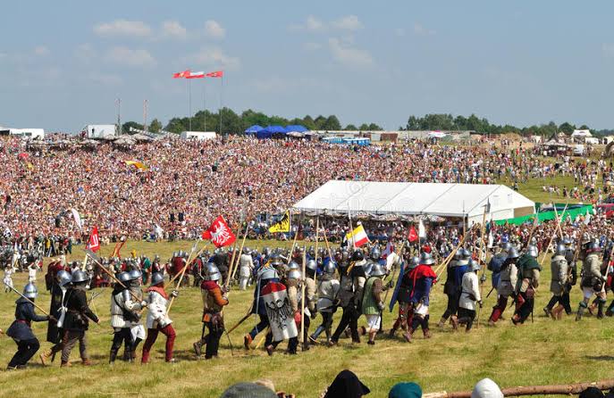 Peragaan Pertempuran Grunwald di Mazuria, memperingati salah satu pertempuran terhebat di Eropa di era Abad Pertengahan (25 Juli 1410). Program tahunan dengan beragam atraksi bertemakan Abad Pertengahan ini digelar selama beberapa hari. Puncak acaranya ialah peragaan pertem- puran dengan para aktor ksatria yang menarik ribuan penonton dari seluruh penjuru negeri (Catatan: Polandia selalu menang dalam pertempuran melawan para ksatria Teutonik).